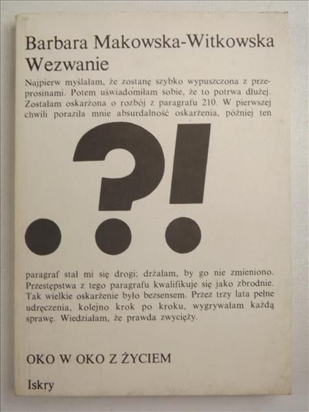 Wezwanie / Barbara Makowska-Witkowska. - Warszawa : Iskry, 1988 (Lub. : LZGPKWN). - 187, [3] s. ; 17 cm.